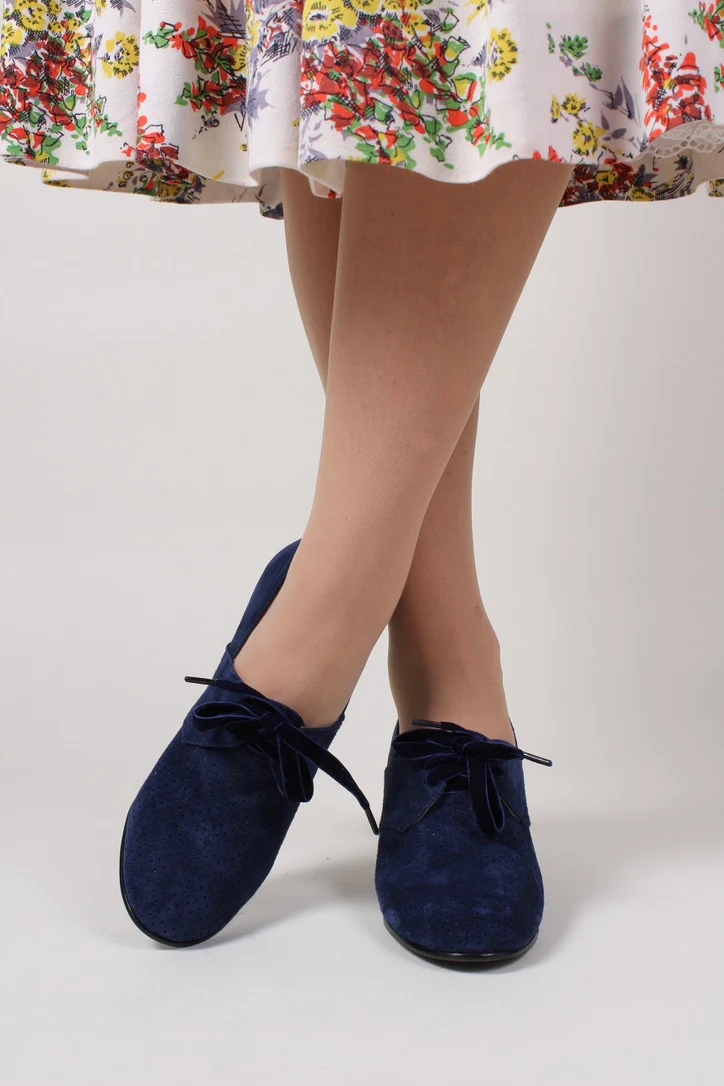 Classic 1940s-Style Lace-Up Suede Pumps with Perforated Detailing