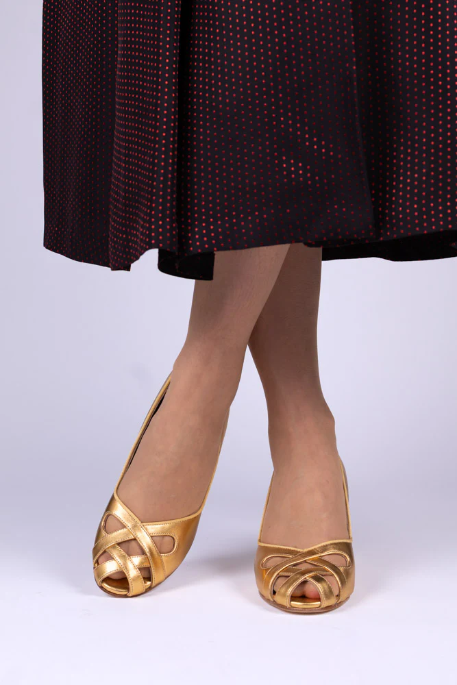 1950's court shoe with peep-toe - Gold - Audrey