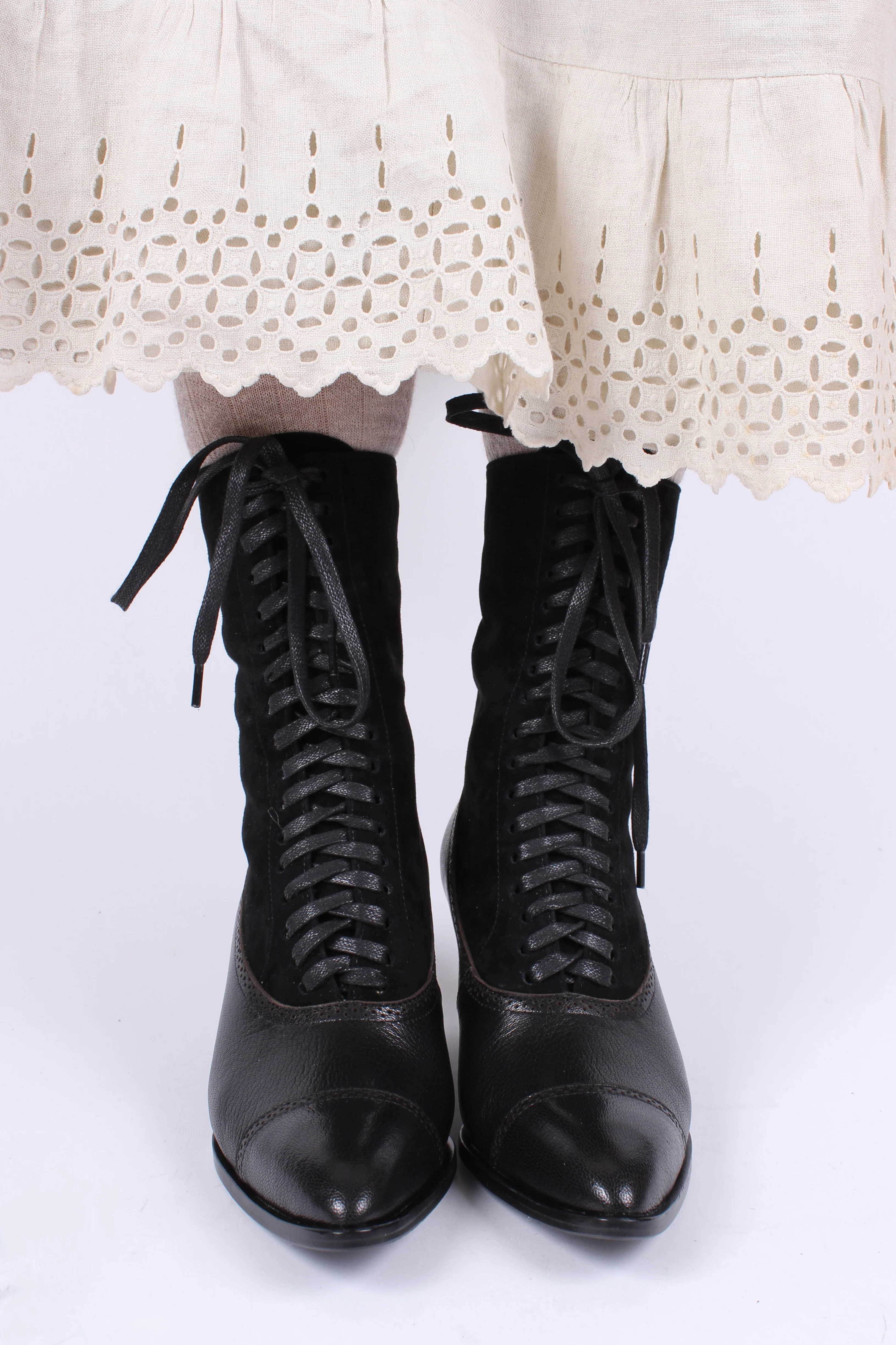 A classic Edwardian-style lace-up boot, crafted from premium leather and suede