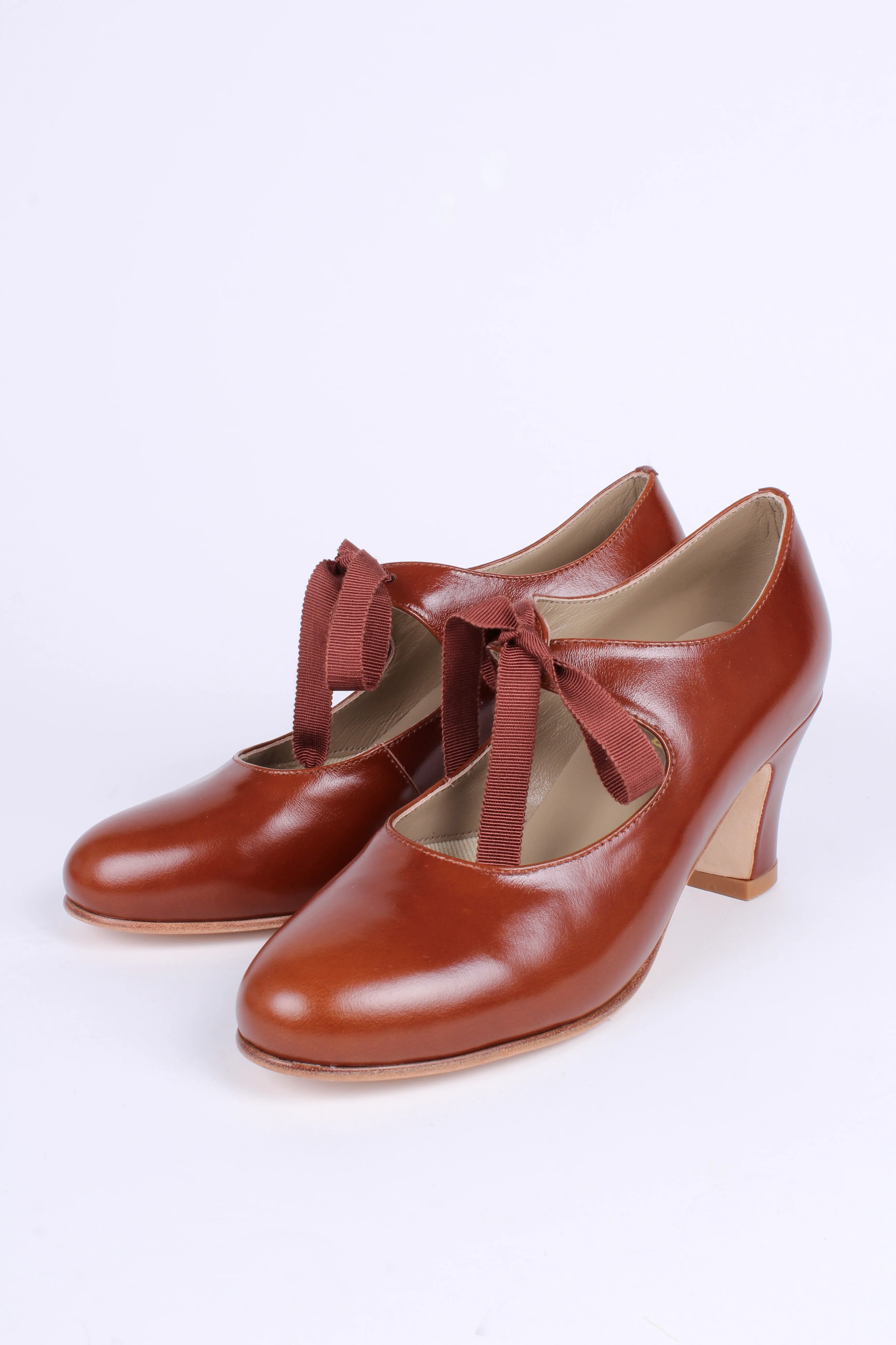 Classic, everyday late 1920's pumps - Cognac brown- Charlotte