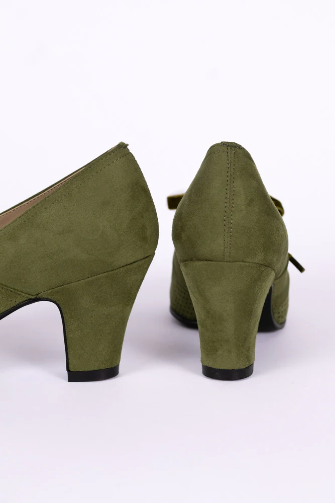 VEGAN shoes - 40s vintage style pumps with shoe lace - Green - Esther